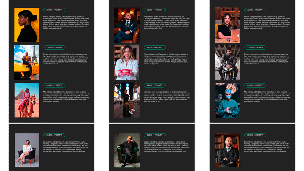 Acesse mais de 200 prompts prontos, basta copiar e colar. Gere resultados visuais impactantes com rapidez.